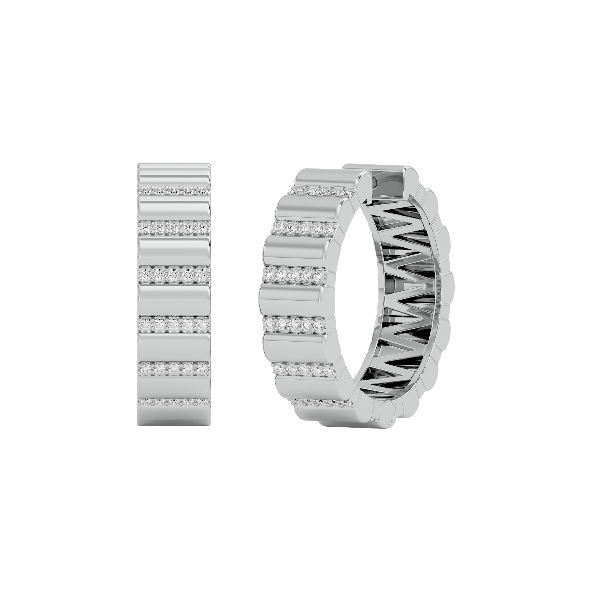 A fun spin on the basic hoops, our "Chonkies" combine the beauty of metal with the brilliance of sustainable diamonds to create statement ear pieces. The hoops are crafted with textured metal and lab-grown diamonds of the best quality to create luxury pieces for your everyday wear.Product SpecificationsSilver Weight (grams): 10.06Diamond Weight (carats): 0.59Diamond Details: Colour: E-FClarity: VS-SICut: Excellent